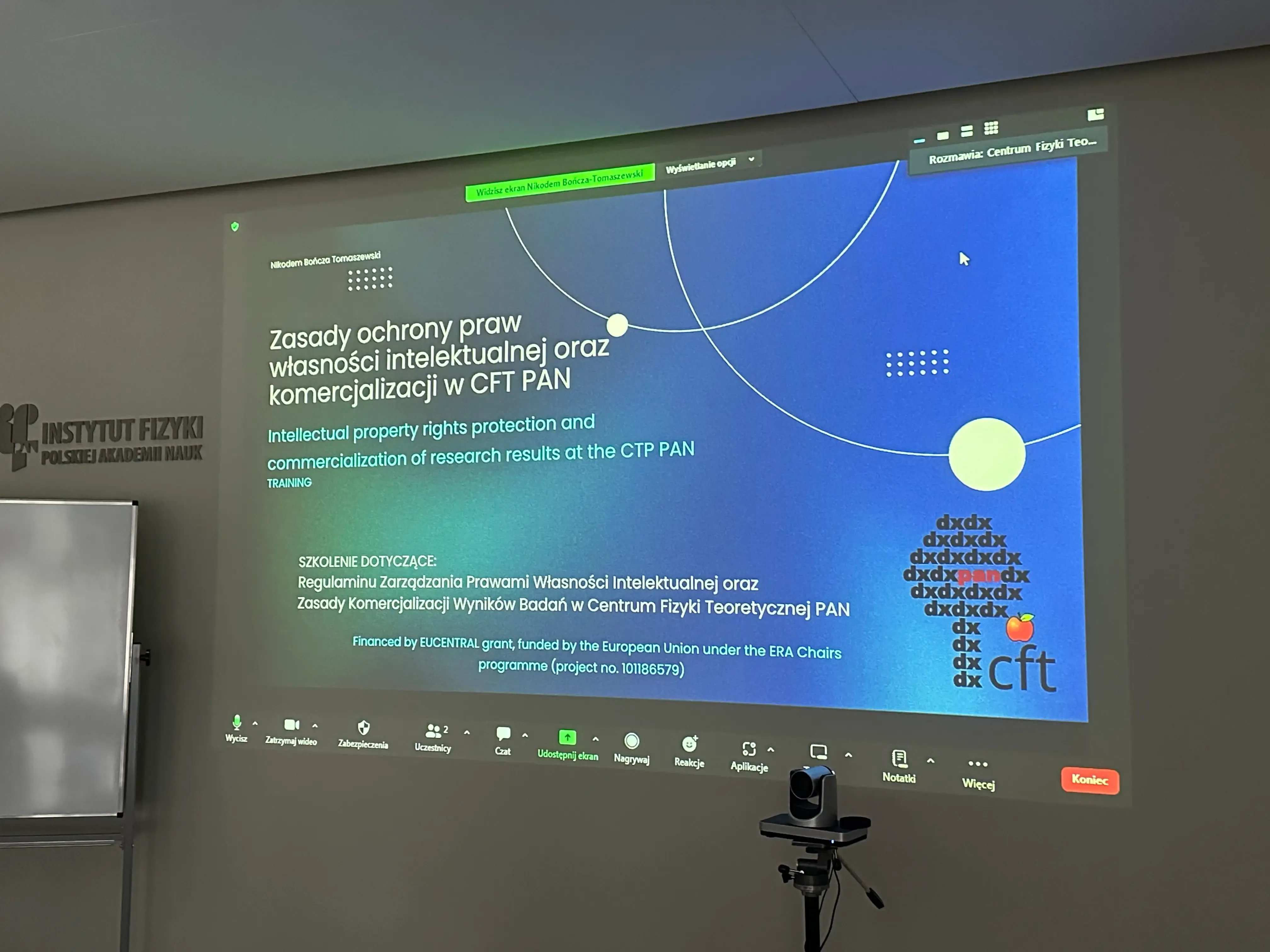 Yesterday, Nikodem Bończa-Tomaszewski led a training session on intellectual property rights for researchers, covering the rules at CTP PAS and in Poland, illustrated with real-life examples.